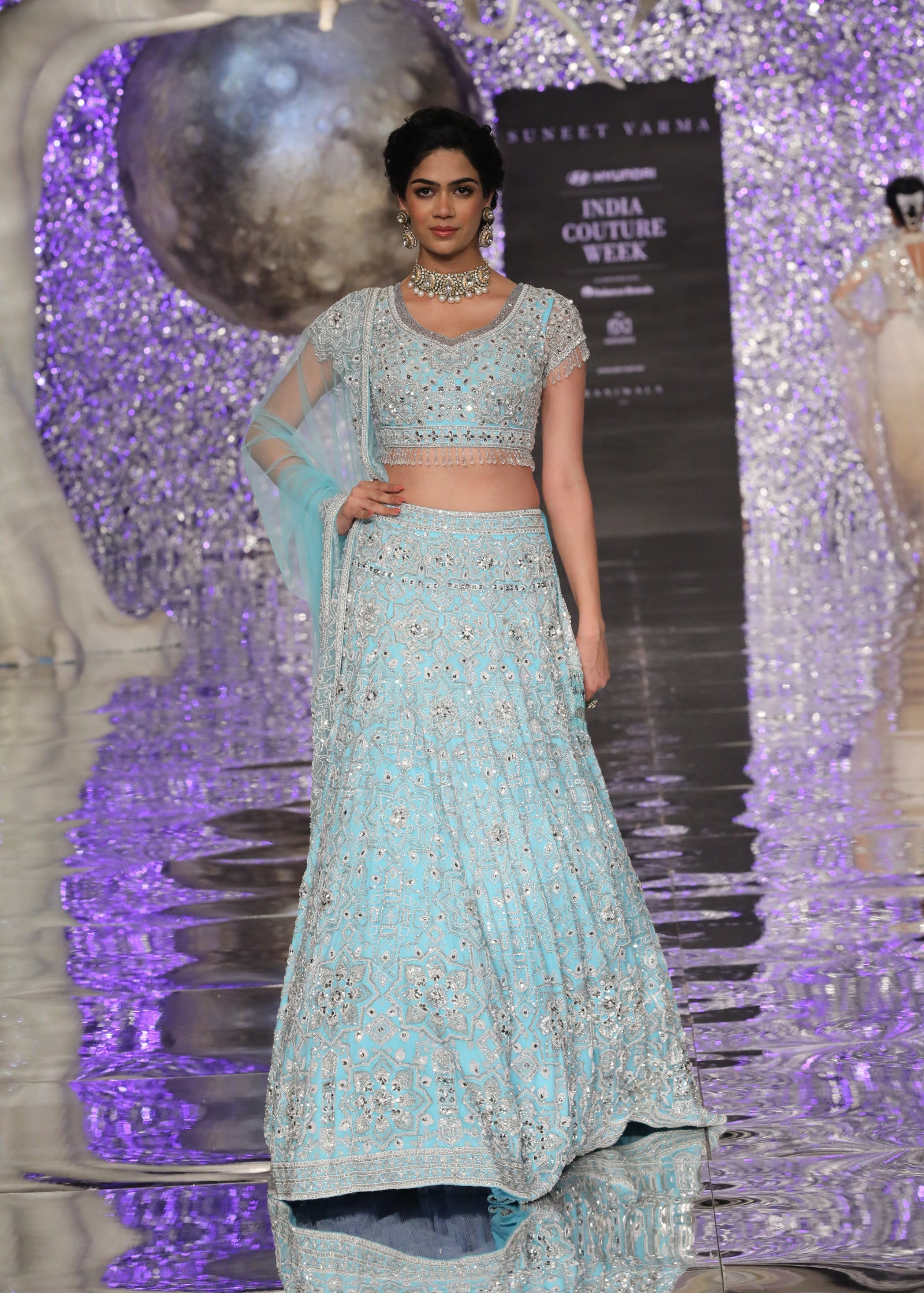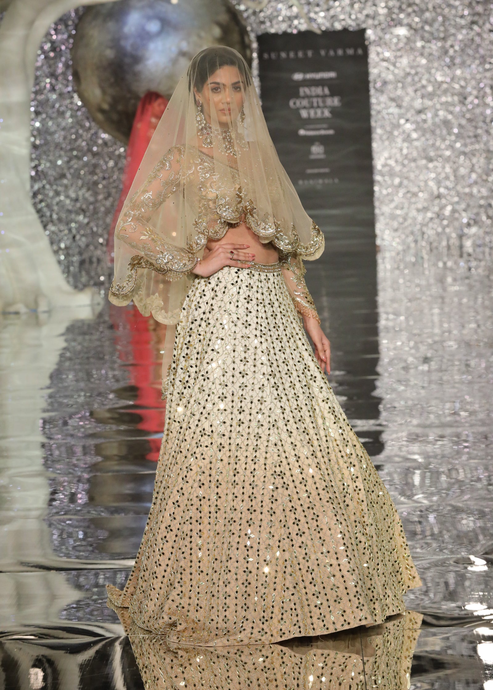 INR 460,000INR 460,000Sold outA soft pink saree heavily adorned with intricate mirror work and sequin embellishments, creating a spectacular shimmer. It is paired with a chic, lightly padded bralette...