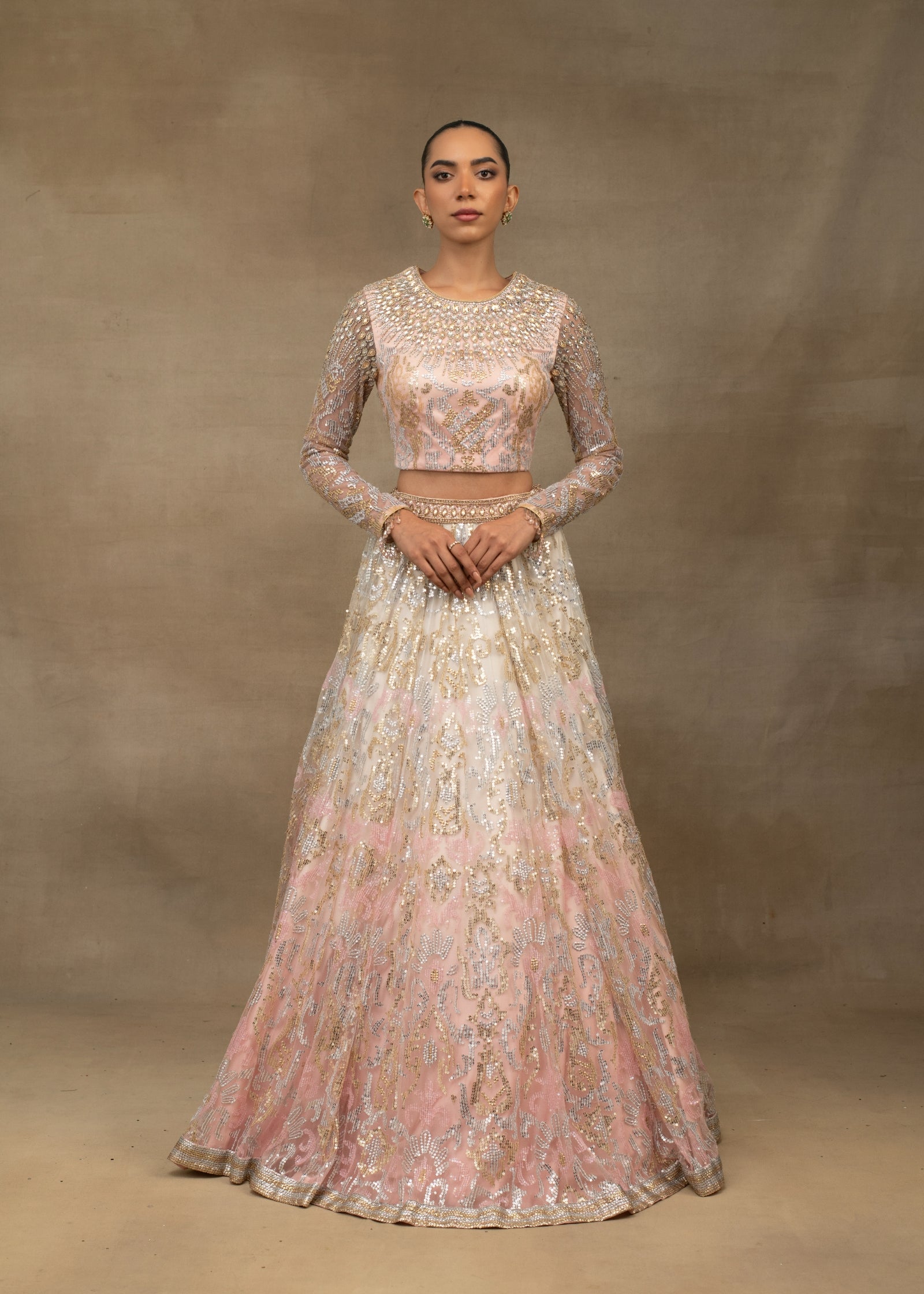 Pink ombre embroidered lehenga with full-sleeve blouse