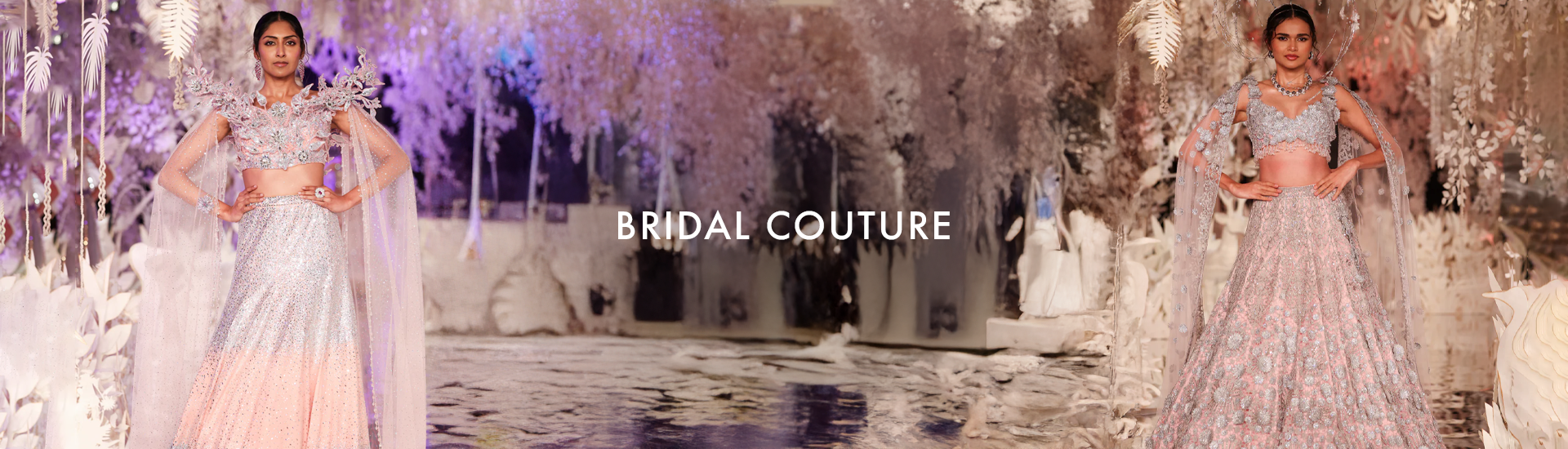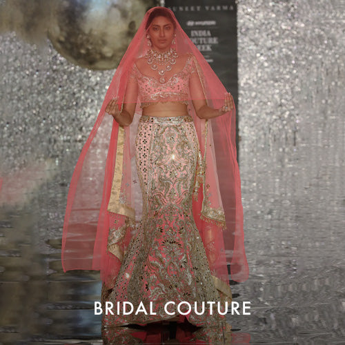 From INR 1,475,000From INR 1,475,000Sold outA striking lehenga ensemble in classic pink, featuring a flared skirt and asleeveless blouse, both lavishly embellished with Swarovski crystals and delicateembroidery in floral and geometric...