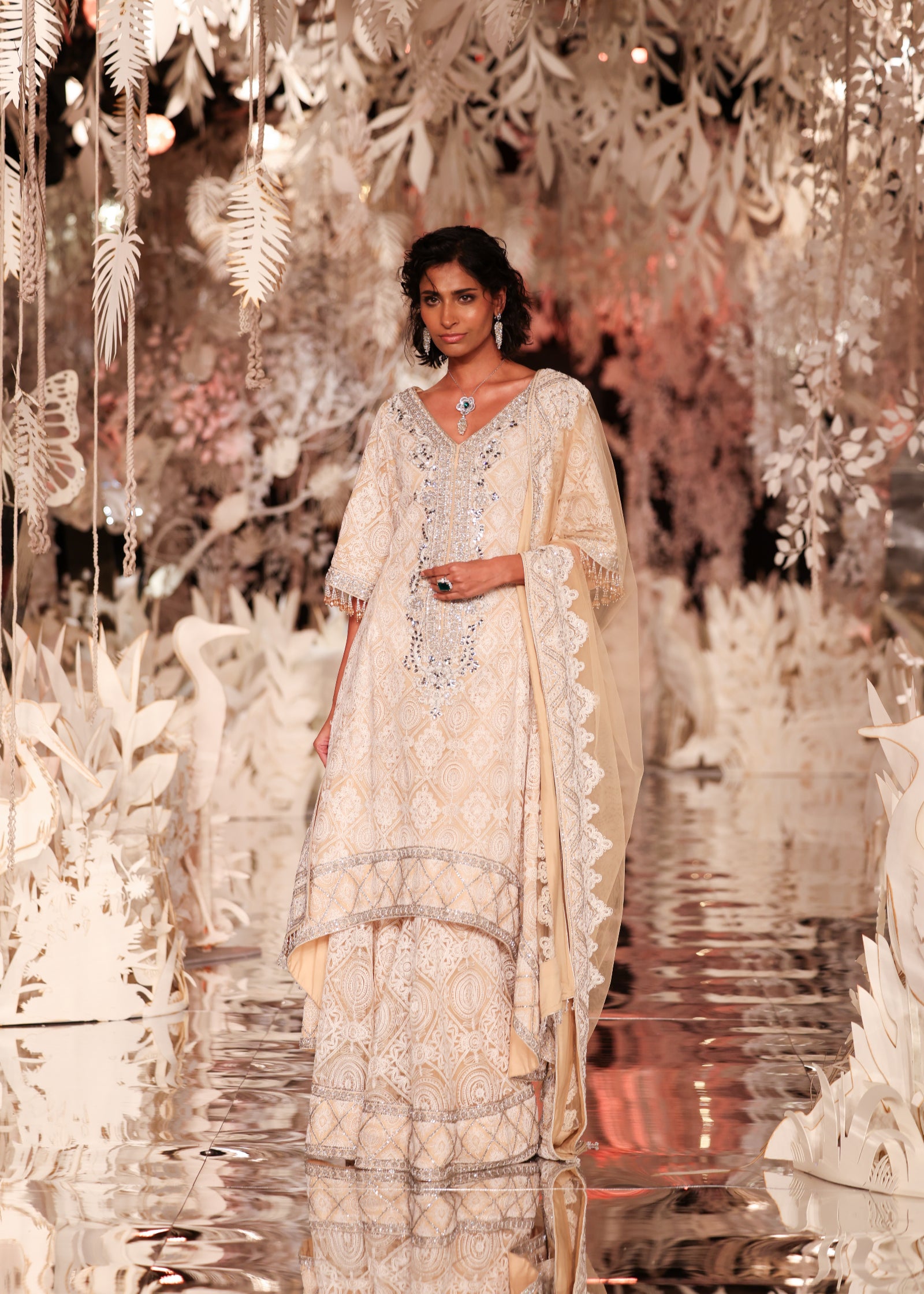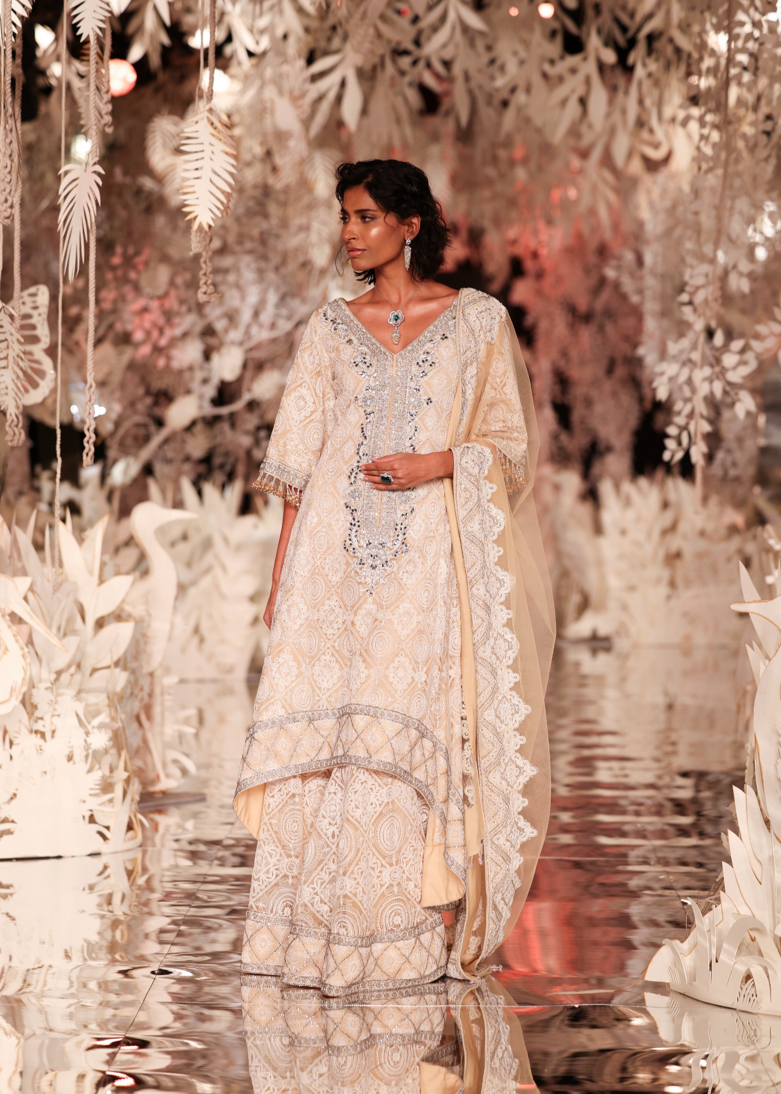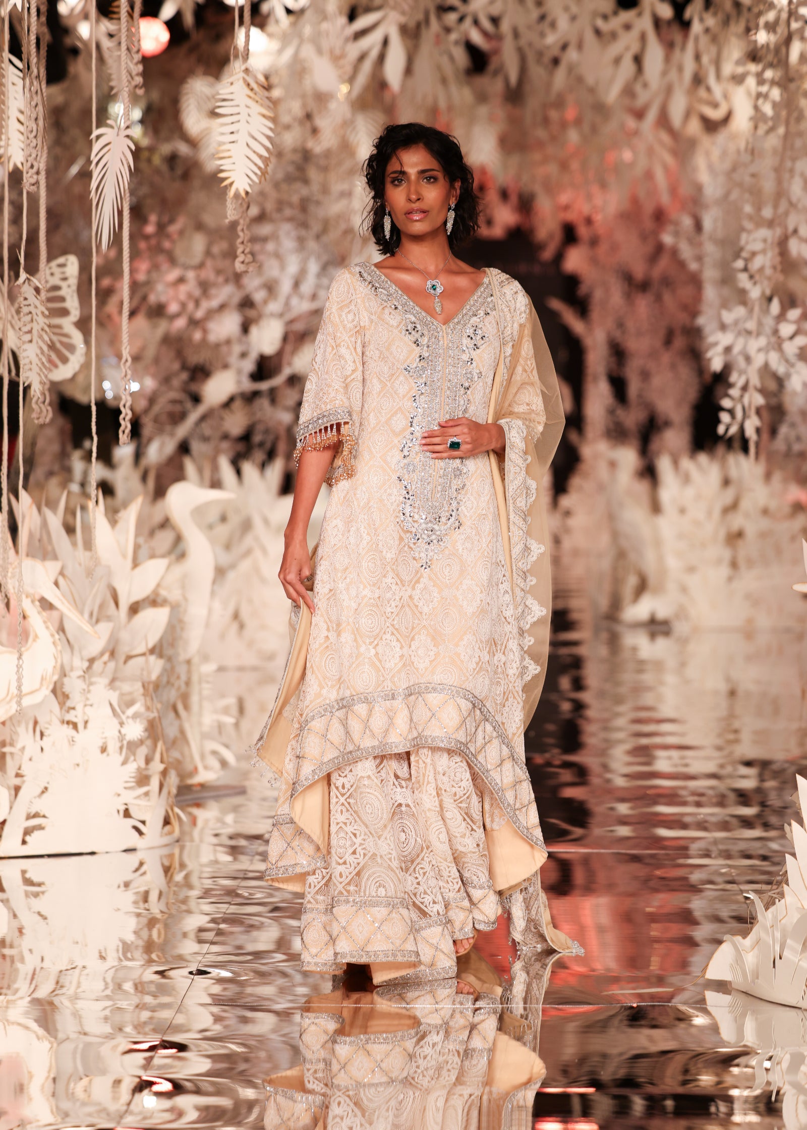 Ivory Pakistani Kurta with Sharara and Dupatta