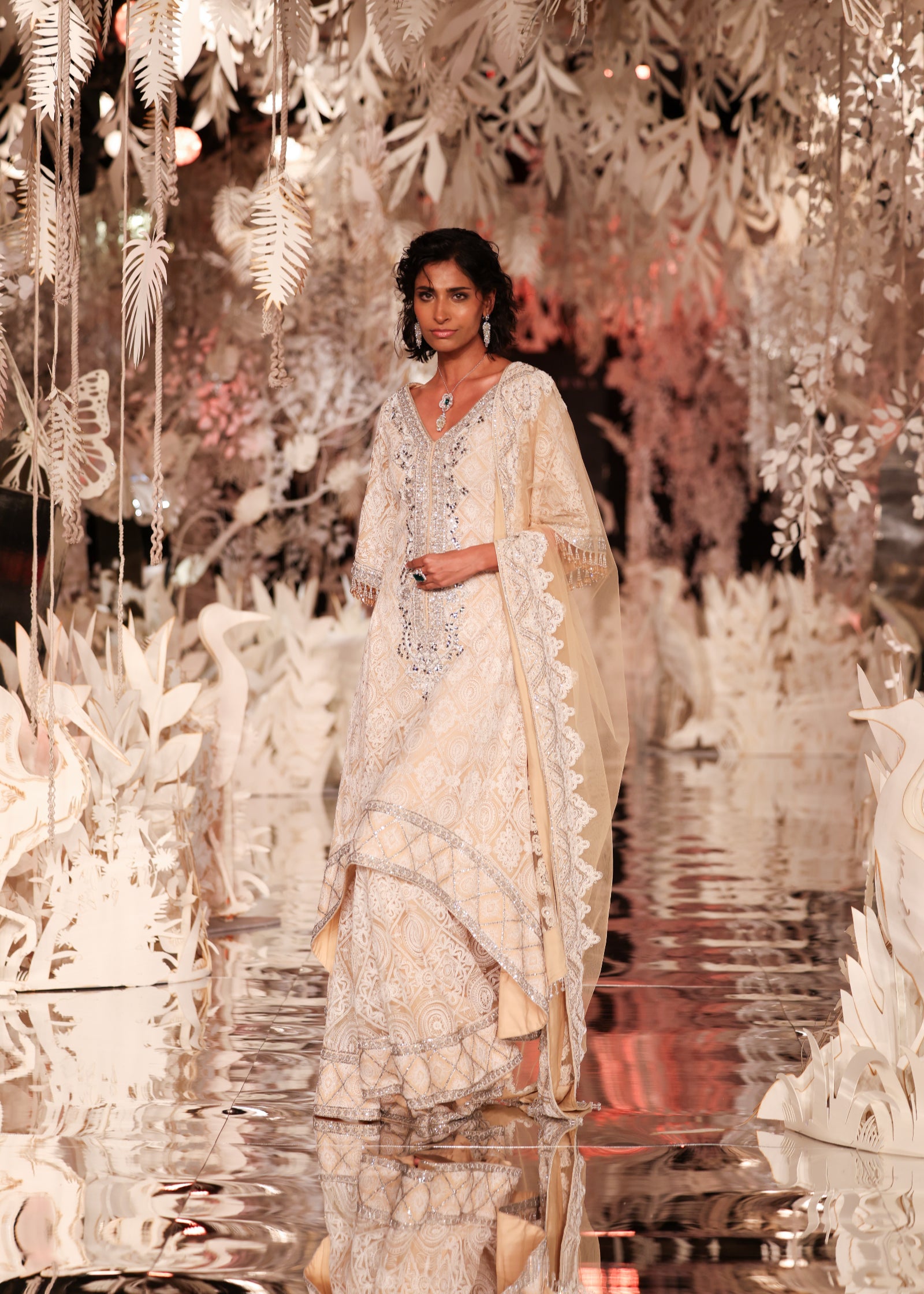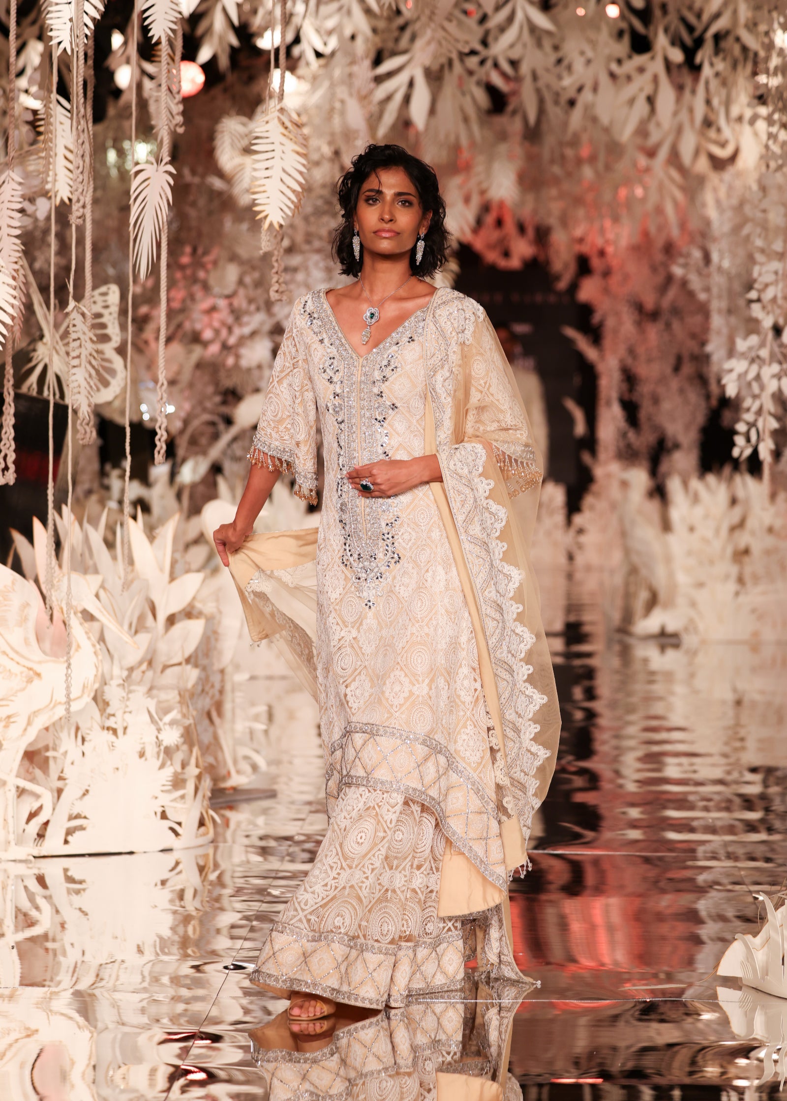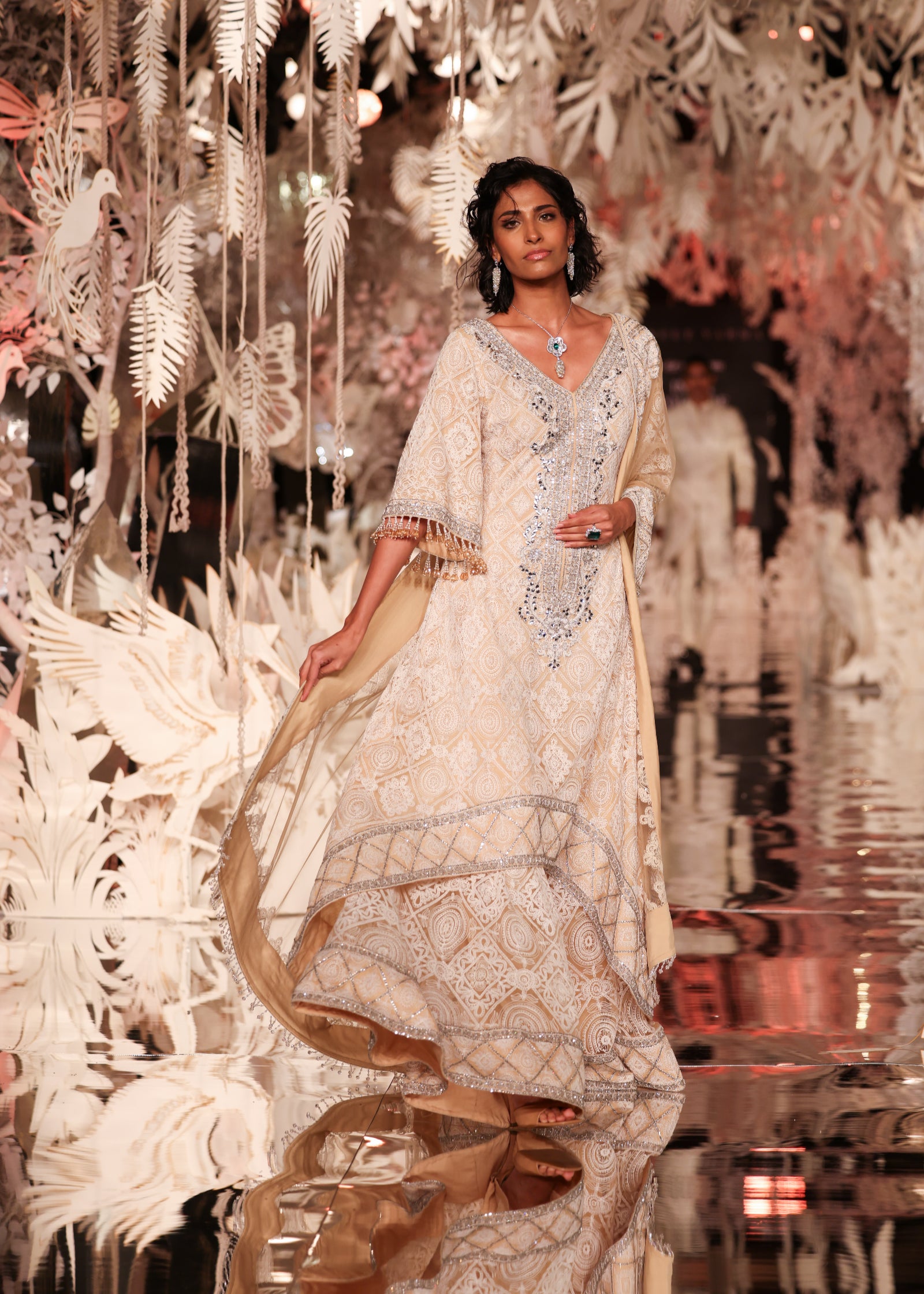 Ivory Pakistani Kurta with Sharara and Dupatta